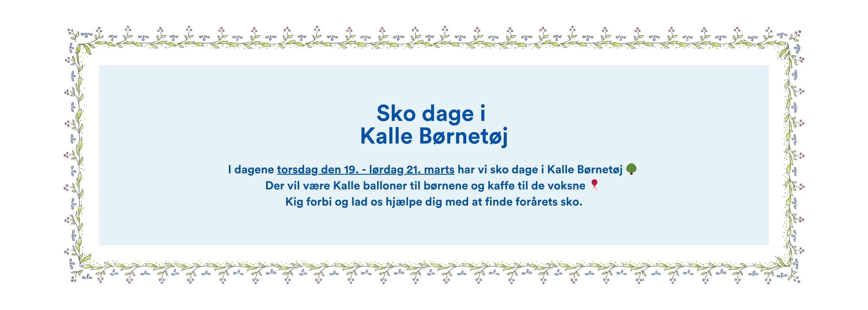 Jeanette Rossing stiftede for nu mere end 50 år siden Kalle Børnetøj & Sko. Ambitionen har i alle årene været den samme - at tilbyde det lækreste børnetøj fra de bedste internationale brands i et samlet udvalg.