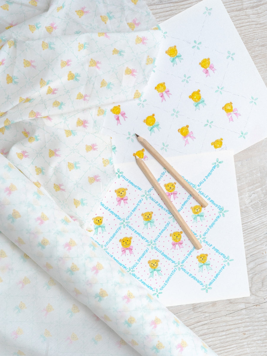 I 2025 lancerede vi vores helt eget og særlige Teddy Tales print - produceret i den skønne Tana Lawn kvalitet fra Liberty.