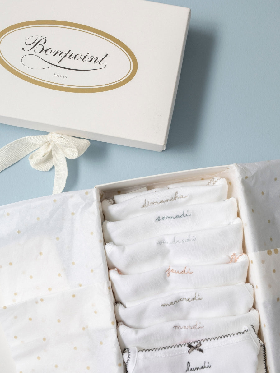 Rosa's undertøj er den hvide 7-pack fra Bonpoint suppleret af den hvide 2-pack fra Petit Bateau med den fine tungekant. Det er bare simpelt, luksus og lækkert.