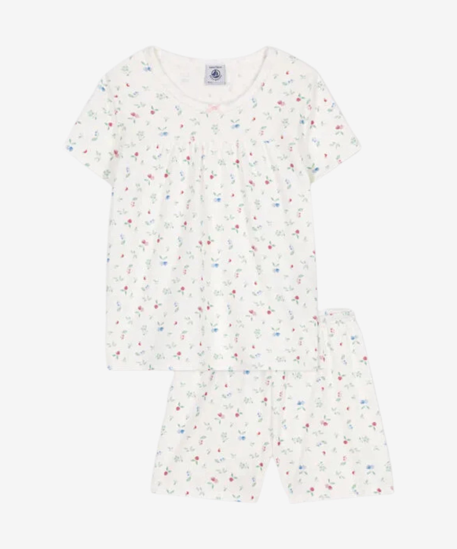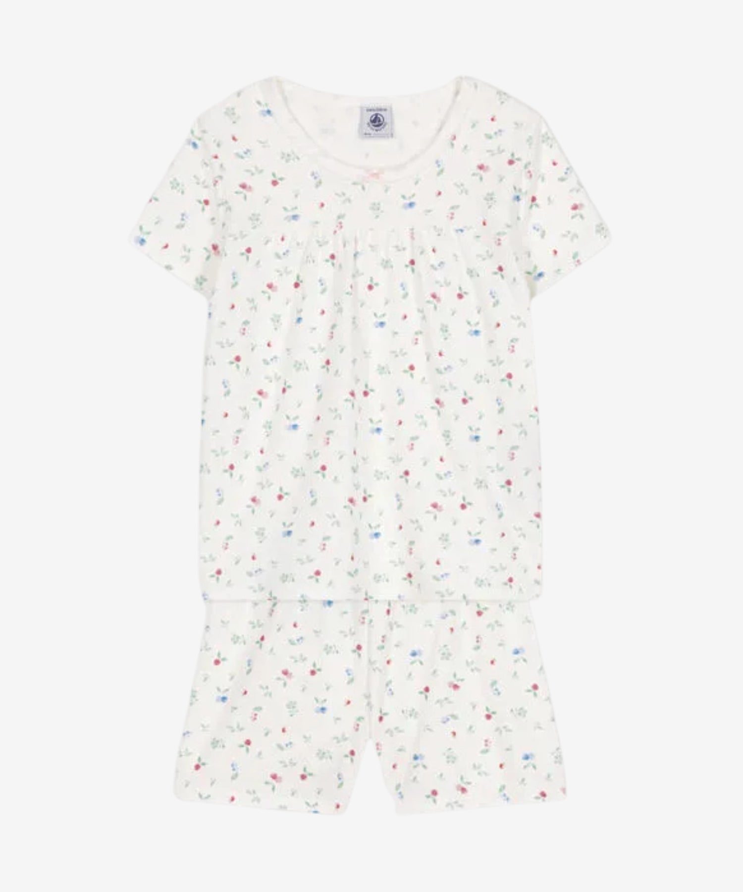 Pyjamas m/Korte Ben og Blomster - Offwhite